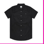 Short sleeve button up shirt, button close chest pocket, clear buttons